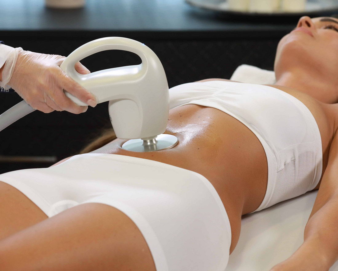 Ultraschall: Durch die tiefenwirksame Ultraschalltechnologie werden Fettzellen gezielt behandelt und die Hautstruktur verbessert. Diese Methode unterstützt die Fettreduktion und Umfangsreduktion, fördert die Durchblutung und sorgt für eine straffere Silhouette.